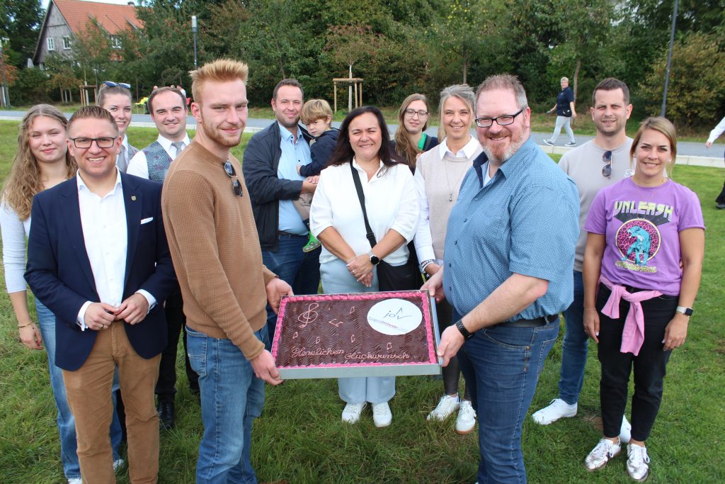 Wie tief verwurzelt das Jugendorchester in Verl ist, zeigte sich anhand einer süßen Geste der Königspaare der vier Verler Schützenvereine. Die Könige und Königinnen überreichten eine große Torte und freuten sich über die gute Zusammenarbeit mit dem JOV und dem gesamten Musikverein.